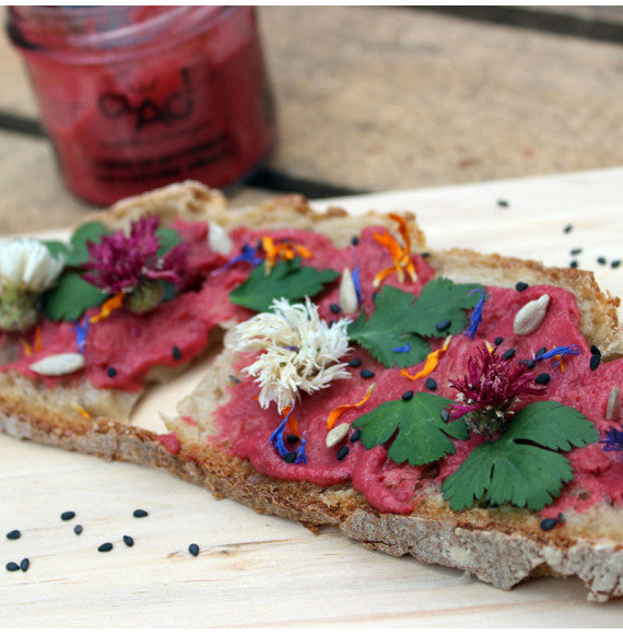 Découvrez le tartinable apéritif bio, local et artisanal CLAC à base de betterave et de chèvre frais. Le goût sucré de la betterave se marie ici avec la fraîcheur du fromage de chèvre pour créer une crème onctueuse de couleur rose.