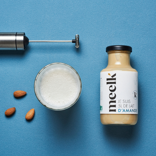 Boissons végétales bio à diluerMeelk est le premier concentré 100% amandes ou noisettes à mélanger chez soi avec de l’eau pour obtenir un lait végétal maison délicieux ! Déçue par les boissons végétales du commerce, au goût très dilué - 97% d’eau - et remplies d’additifs, la marque a imaginé une solution plus saine et super gourmande. Ainsi est née Meelk, la première boisson végétale bio à diluer facilement chez soi, réalisée avec un seul ingrédient pour redécouvrir le vrai goût des amandes ou des noisettes.